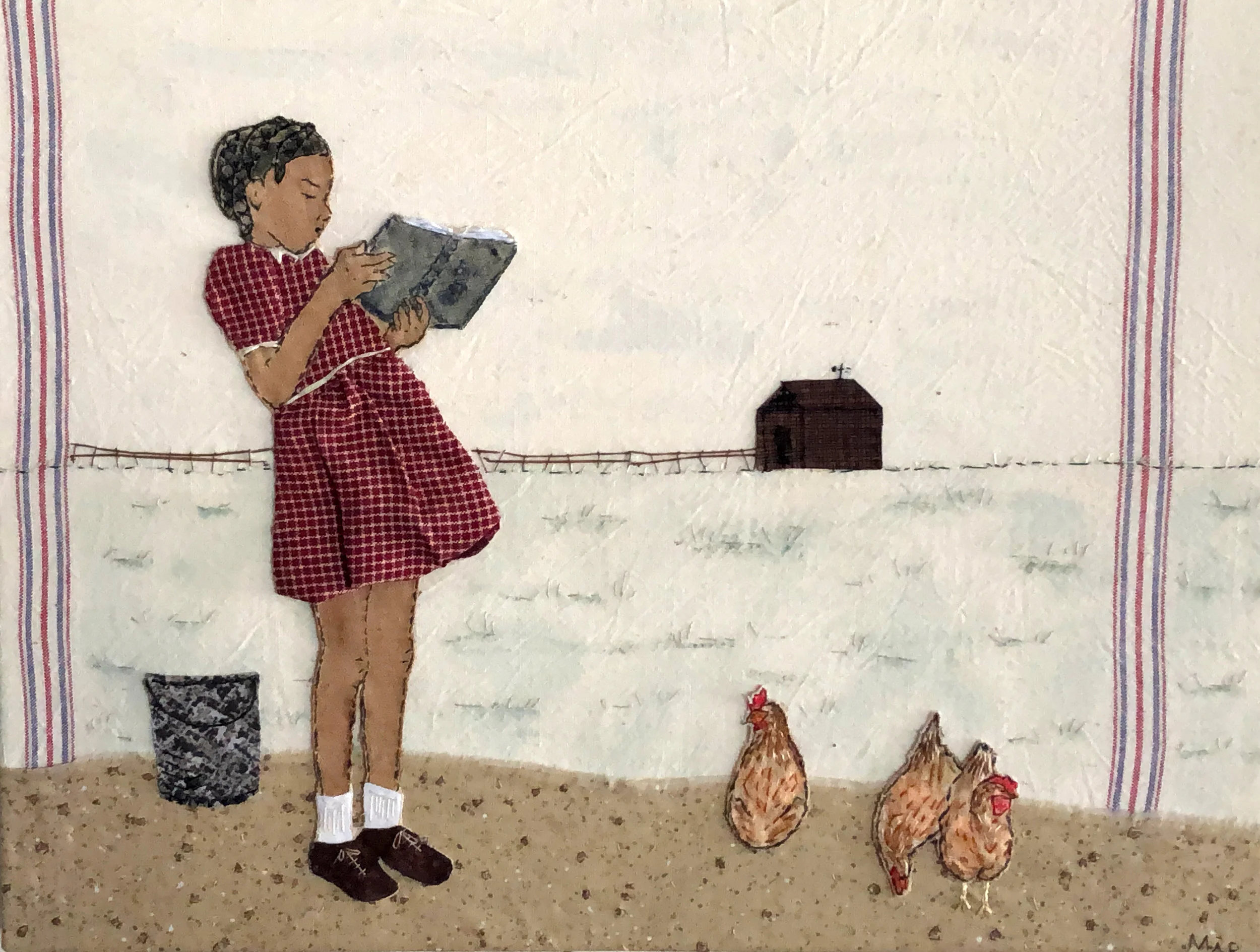 I am a self-taught artist who tells bite-sized stories with fabric and thread. I use simple stitches on layers of manipulated applique to create dimension and movement. My figurative stories mostly live in the past and showcase the pluck and strength demanded of American life during the 30’s-60’s. Events like the Great Depression, the Dust Bowl, and the Civil Rights Movement created both heroes and villains. But I focus on the ordinary folk who had to find their place somewhere in between.